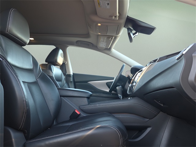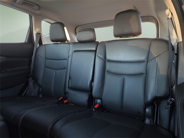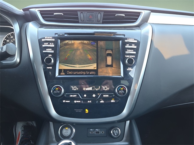 Vehicle Options: Cargo Package (Cargo Area Protector, Cargo Net, First Aid Kit, and Retractable Cargo Cover), SL Moonroof Package (Dual-Panel Moonroof and Roof Rail Delete), 11 Speakers, 4-Wheel Disc Brakes, 4.667 Axle Ratio, ABS brakes, Air Conditioning, Alloy wheels, AM/FM radio: SiriusXM, AM/FM/CD/MP3/WMA Audio System, Auto High-beam Headlights, Auto-dimming Rear-View mirror, Automatic temperature control, Blind Spot Warning, Brake assist, Bumpers: body-color, Carpeted Floor Mats & Carpeted Cargo Mat, CD player, Child-Seat-Sensing Airbag, Delay-off headlights, Driver door bin, Driver vanity mirror, Dual front impact airbags, Dual front side impact airbags, Electronic Stability Control, Exterior Parking Camera Rear, Four wheel independent suspension, Front anti-roll bar, Front Bucket Seats, Front Center Armrest, Front dual zone A/C, Front fog lights, Front reading lights, Fully automatic headlights, Garage door transmitter: HomeLink, Heated Front Bucket Seats, Heated front seats, Heated power door mirrors, Heated rear seats, Heated steering wheel, Illuminated entry, Illuminated Kick Plates, Illuminated Kick Plates (PIO), Knee airbag, Leather-Appointed Seat Trim, Low tire pressure warning, Memory seat, Navigation system: NissanConnect Navigation, NissanConnect featuring Apple CarPlay and Android Auto, Occupant sensing airbag, Outside temperature display, Overhead airbag, Overhead console, Panic alarm, Passenger door bin, Passenger vanity mirror, Power door mirrors, Power driver seat, Power Liftgate, Power passenger seat, Power steering, Power windows, Radio data system, Rear anti-roll bar, Rear Bumper Protector, Rear reading lights, Rear seat center armrest, Rear side impact airbag, Rear window defroster, Rear window wiper, Remote keyless entry, Security system, Speed control, Speed-sensing steering, Speed-Sensitive Wipers, Splash Guards (B92), Split folding rear seat, Spoiler, Steering wheel mounted audio controls, Tachometer, Telescoping steering wheel, Tilt steering wheel, Traction control, Trip computer, Turn signal indicator mirrors, Variably intermittent wipers, and Wheels: 20" Machined Aluminum-Alloy.