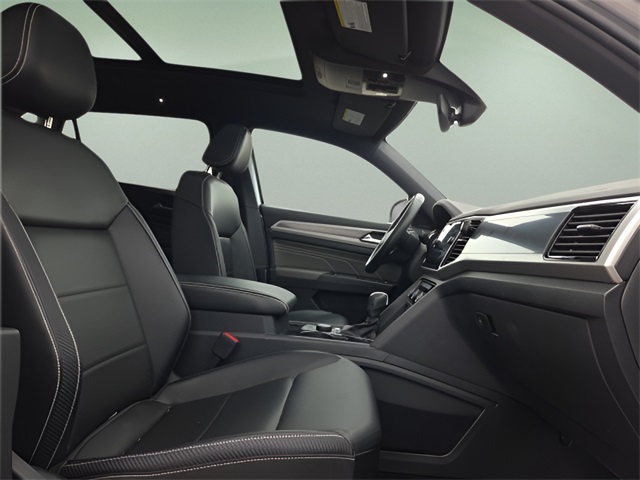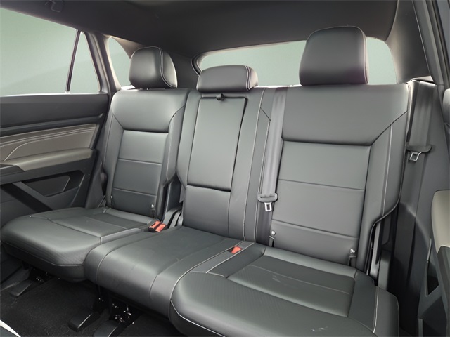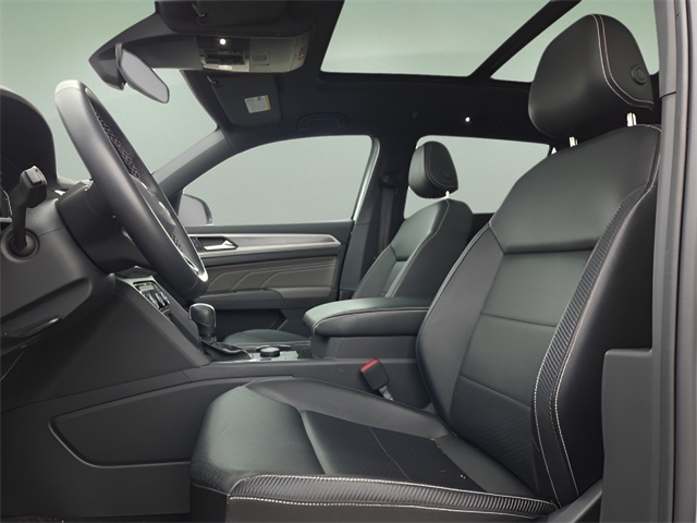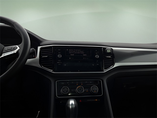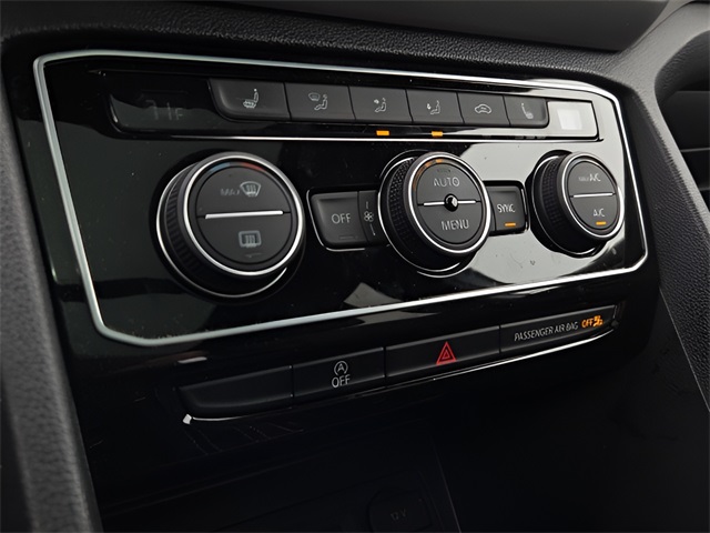 Vehicle Options: 3.60 Axle Ratio, 4-Wheel Disc Brakes, 6 Speakers, ABS brakes, Air Conditioning, Alloy wheels, AM/FM radio: SiriusXM with 360L, Auto High-beam Headlights, Auto-dimming Rear-View mirror, Automatic temperature control, Brake assist, Bumpers: body-color, Compass, Delay-off headlights, Driver door bin, Driver vanity mirror, Dual front impact airbags, Dual front side impact airbags, Electronic Stability Control, Emergency communication system: VW Car-Net Safe & Secure 5-year, Exterior Parking Camera Rear, First Aid Kit, Four wheel independent suspension, Front anti-roll bar, Front Bucket Seats, Front Center Armrest, Front dual zone A/C, Front fog lights, Front reading lights, Fully automatic headlights, Heated Comfort Front Bucket Seats, Heated front seats, Heated power door mirrors, Heated steering wheel, Heavy Duty Trunk Liner w/VW CarGo Blocks, Illuminated entry, Leather Shift Knob, Low tire pressure warning, Memory seat, Navigation System, Occupant sensing airbag, Outside temperature display, Overhead airbag, Overhead console, Panic alarm, Passenger door bin, Passenger vanity mirror, Perforated V-Tex Leatherette Seating Surfaces, Power door mirrors, Power driver seat, Power Liftgate, Power moonroof: Panoramic, Power passenger seat, Power steering, Power windows, Radio data system, Radio: MIB3 Discover Media w/8" Touchscreen Navigation, Rain sensing wipers, Rear anti-roll bar, Rear reading lights, Rear seat center armrest, Rear window defroster, Rear window wiper, Remote keyless entry, Roadside Assistance Kit, Rubber Mats Kit, Security system, Speed control, Speed-sensing steering, Split folding rear seat, Spoiler, Standard Suspension, Steering wheel mounted audio controls, Tachometer, Telescoping steering wheel, Tilt steering wheel, Traction control, Trip computer, Turn signal indicator mirrors, Variably intermittent wipers, and Wheels: 20" x 8J 5-Spoke 2-Tone Machined Alloy.